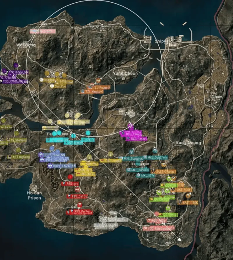 本局决赛圈位于北侧山顶附近。